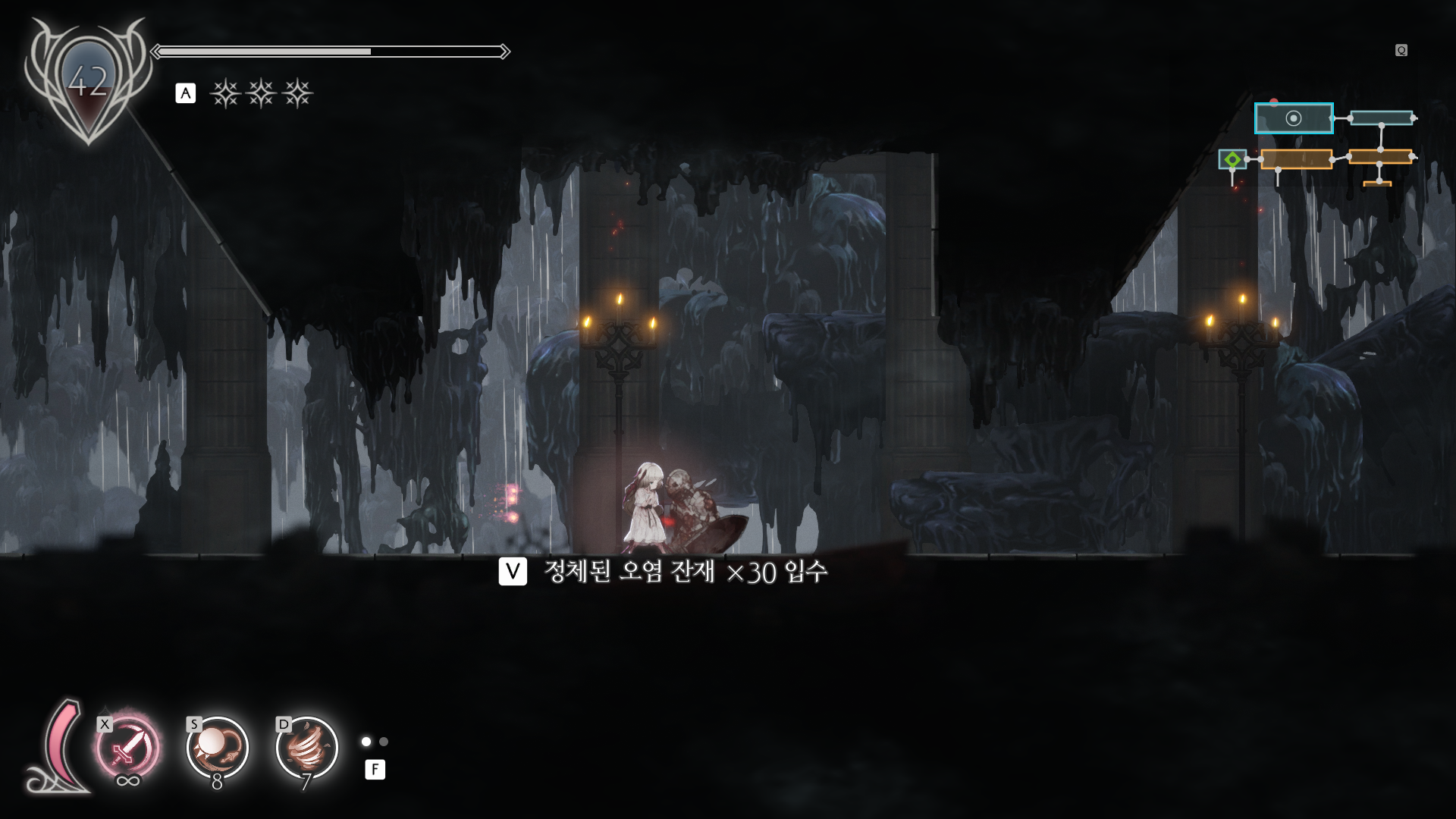 78번은 왼쪽으로 가는 길이 있고 오른쪽으로 가는 길이 있습니다. 거머리같은 애들 점프해서 내려오는데 그 아이들만 조심하면 됩니다. 79번은 왼쪽으로 쭉 가다보면 잔재들이 은근 있습니다. 먹고 벽타기해서 올라서 또 먹고 해서 위로 올라갑시다.
