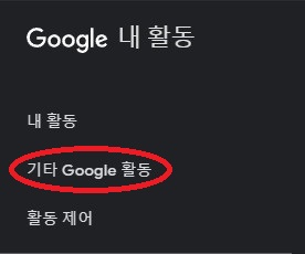 2. 우선 내활동으로 들어가게되면 좌측 네이게이션바를 보면 메뉴들이 있는데, 기타 구글 활동을 클릭한다.